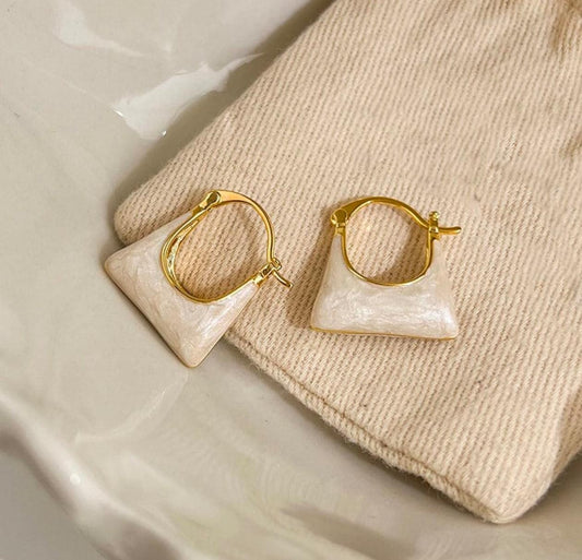 Mini Handbag Hoop Earrings – Chic Pearl Enamel Drop Design