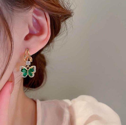 Emerald Butterfly Drop Earrings – Gold Plated, Dainty & Dreamy