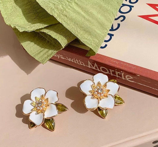 Golden Bloom Pearl Flower Studs – Elegant Petal Charm Earrings