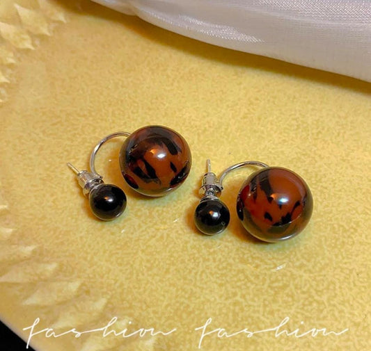 Tortoiseshell Sphere Drop Earrings – Retro Chic Double-Sided Studs