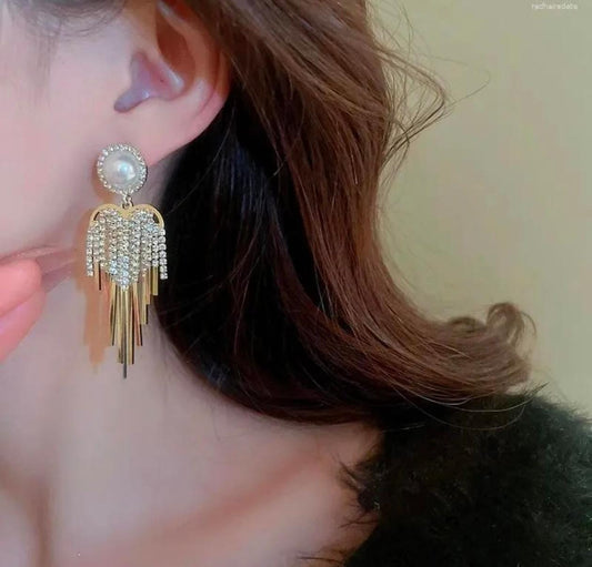 Pearl Glam Tassel Earrings – Crystal Fringe Statement Drop