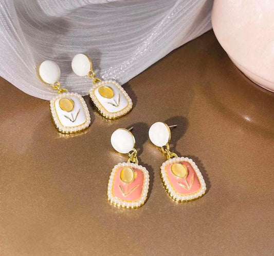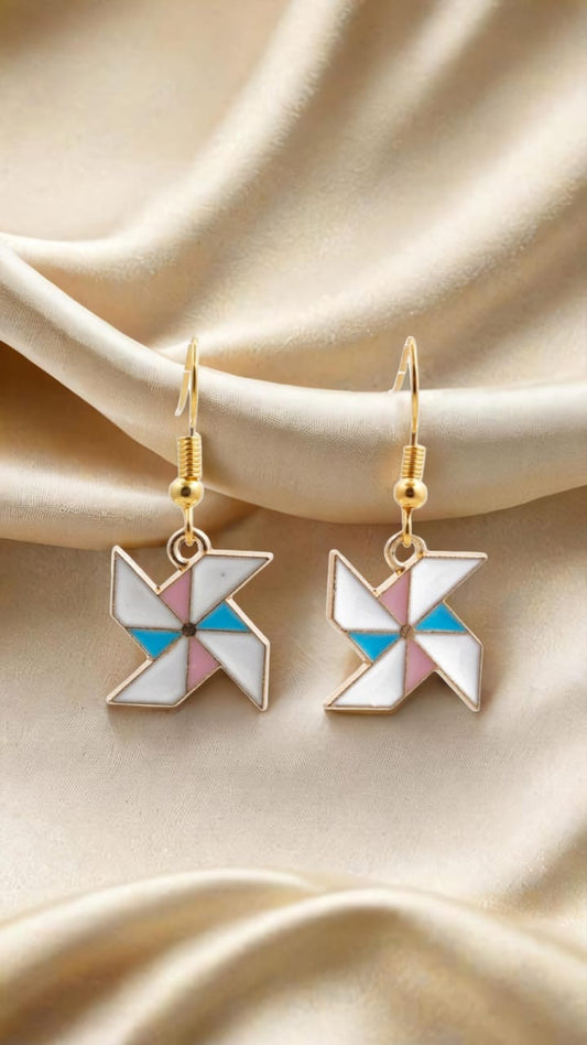 Pastel Pinwheel Drop Earrings – Enamel Charm with Gold Hook