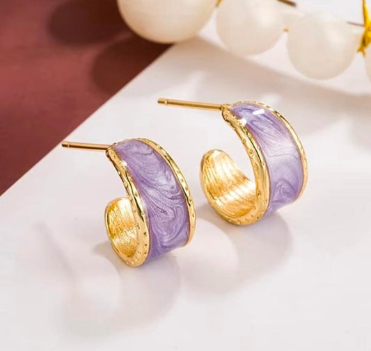 Royal Violet Enamel Mini Hoops – Gold-Trimmed Chic